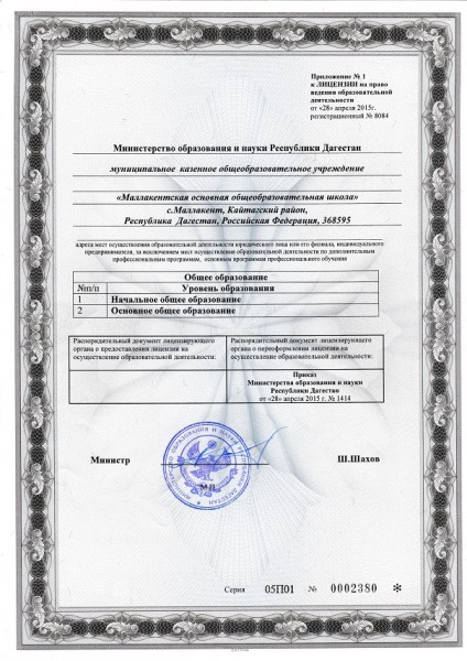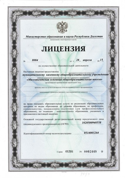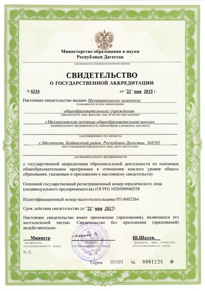 | Полное наименование образовательной организации* | Муниципальное казенное общеобразовательное учреждение "Маллакентская основная общеобразовательная школа" |